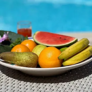 Alcune camere offrono un divano e una TV a schermo piatto con canali satellitari con viste sulla piscina. Sono inoltre dotate di utensili da cucina e di una lavatrice. I bagni privati hanno un bidet e un WC separato.